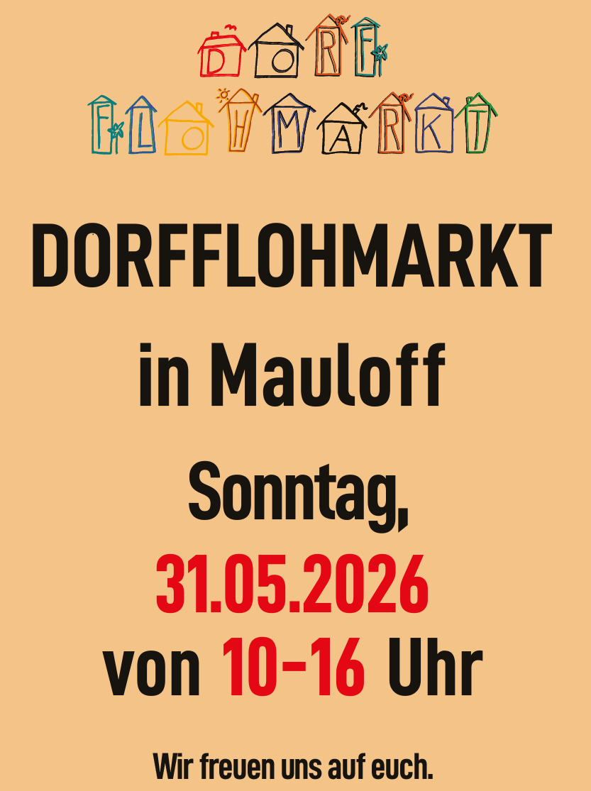 Auch dieses Jahr heißt’s in Mauloff wieder: Stöbern, babbele und Schnäppchen mache! Unser Dorfflohmarkt geht in die nächste Runde – und im ganzen Ort gibt’s wieder jede Menge zu entdecken. Von Trödel bis Schatz ist alles dabei, angeboten von netten Leut’ aus’m Dorf.